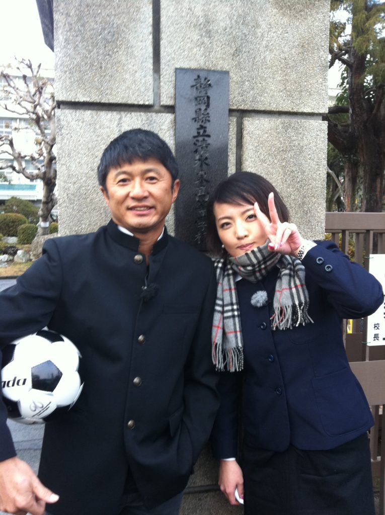 こちらも、清水東レジェンドで欠かせない武田修宏さん✨14年前、母校サプライズ訪問した時のロケでの1枚です。授業中にいきなりこの格好で教室に突撃したら、生徒たちは武田さんを見て「ギャーーーー!」と大絶叫。ローカルのゴールデンで驚異的な視聴率を叩き出した伝説回です。
