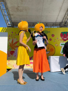 午後は鬼頭アナが合流し、みかんの被り物に変身🍊🍊