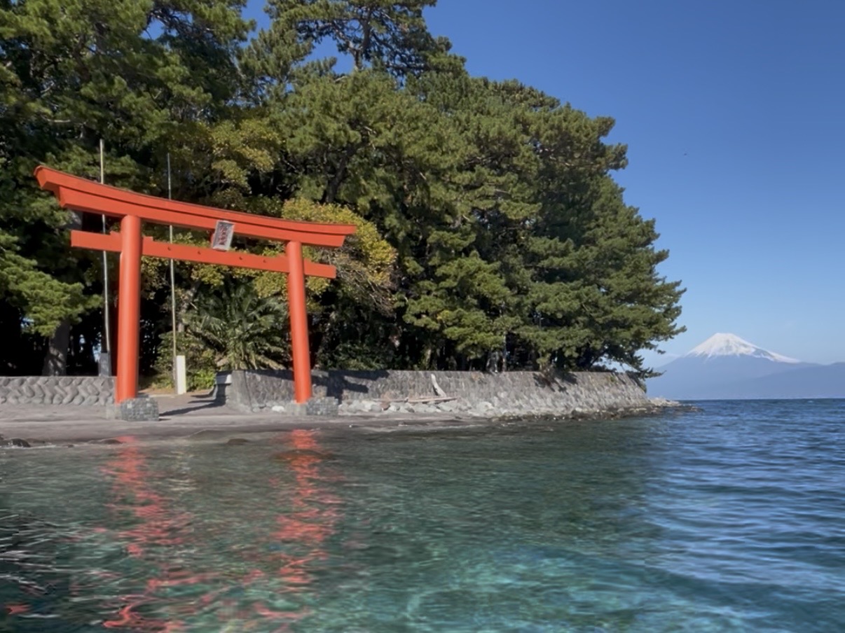 新年に相応しい、絶景スポットをご紹介します🌊🗻透明度抜群の海越しの富士山、赤鳥居の素晴らしい風景を望める場所、しかも、誰もいない・・・!穴場と言えるでしょう。